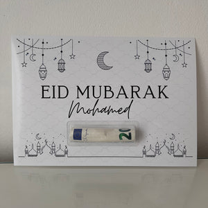 Carte Eid Mubarak avec support billet et Prénom personnalisé