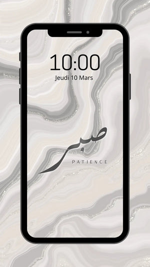 Fond d’écran calligraphie Arabe Patience / Sabr effet marbré
