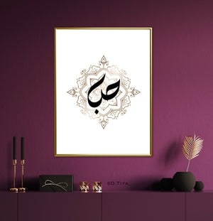 Affiche Hob ( amour ) en Calligraphie Arabe du style Diwani sur Rosace doré Orientale style henné.