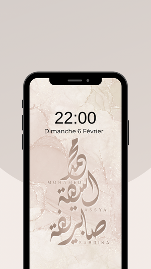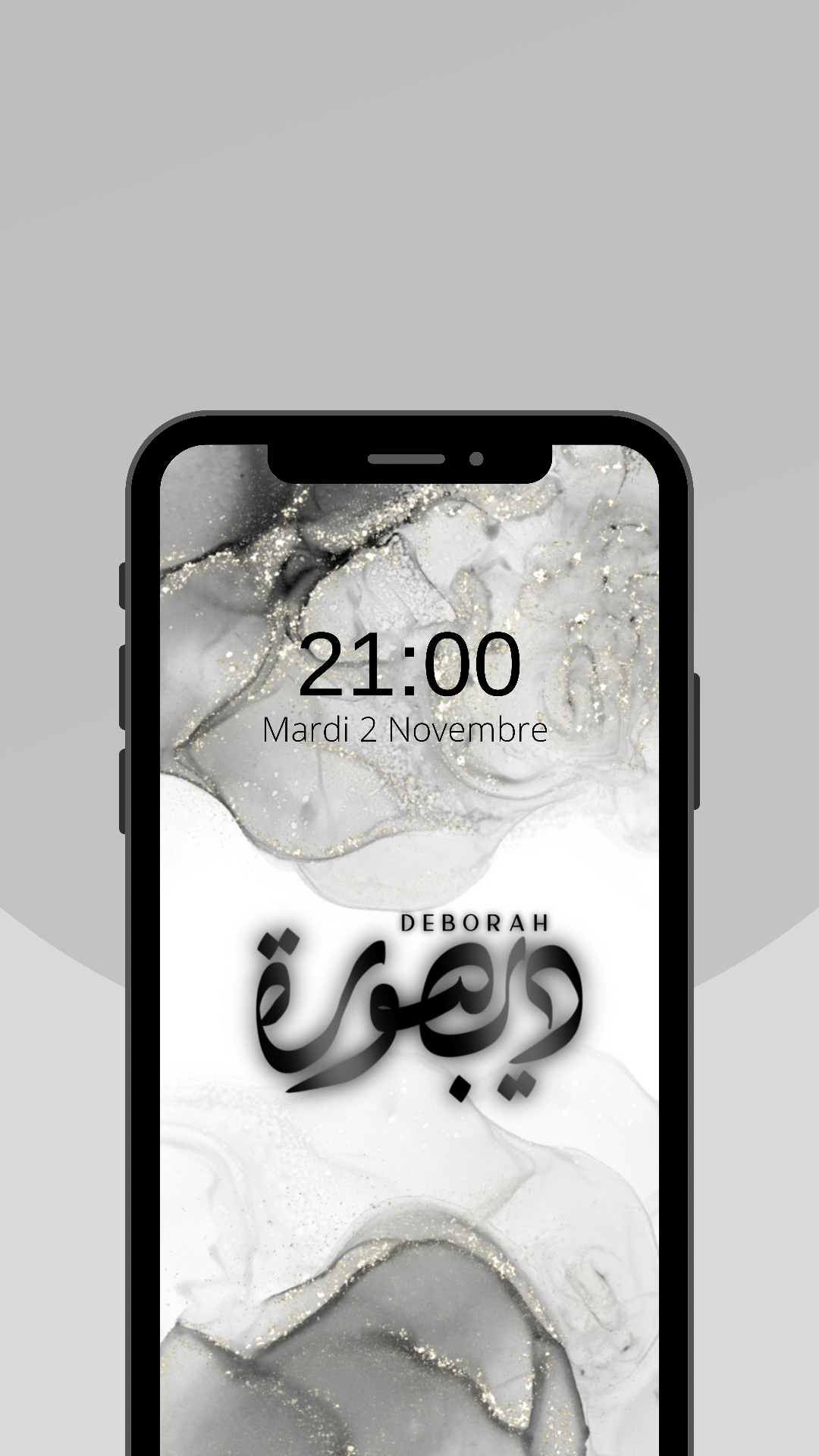 Fond d’écran 2 Prénoms personnalisé en Calligraphie Diwani sur fond encré.