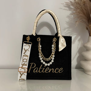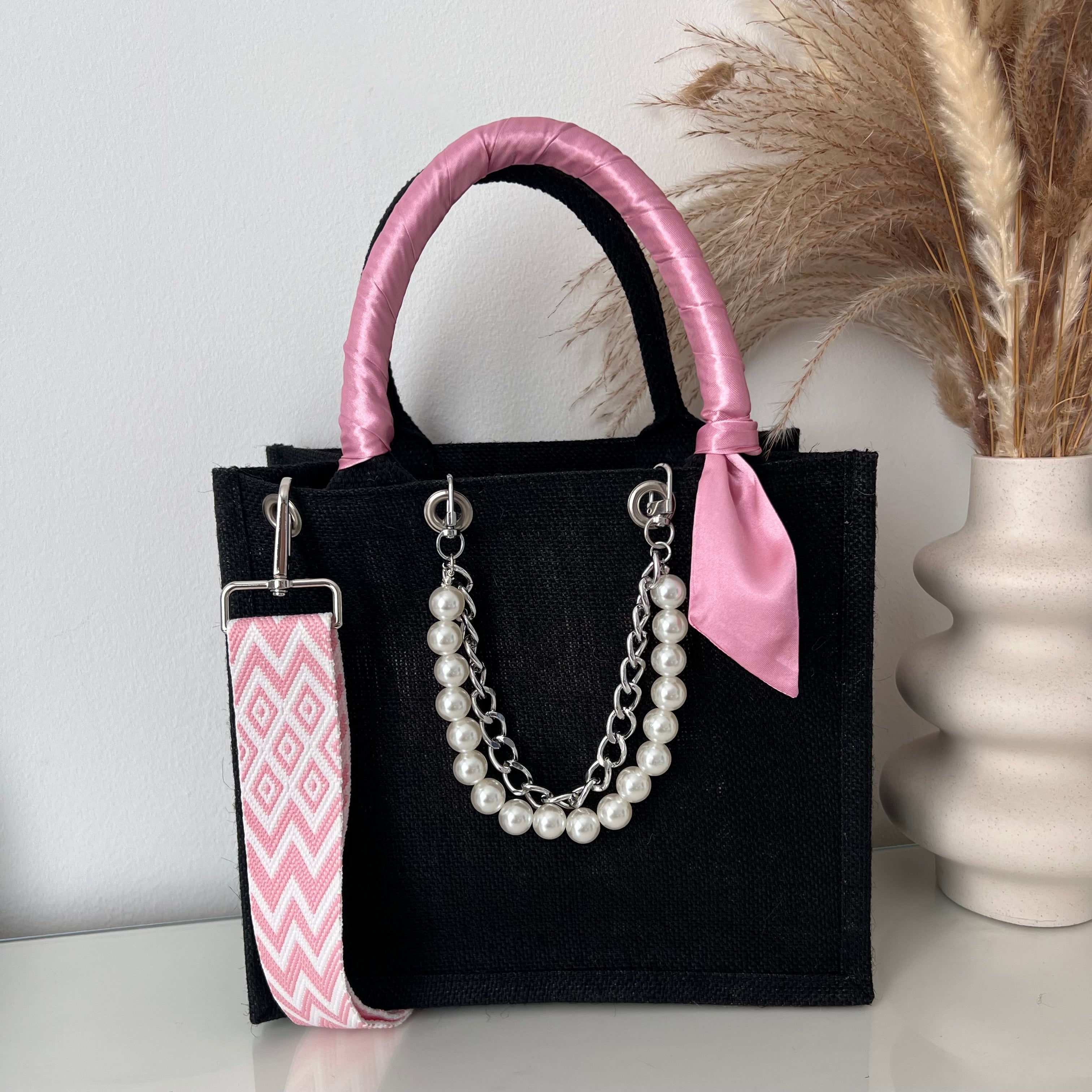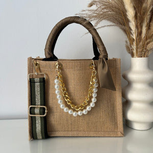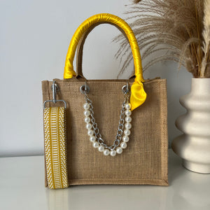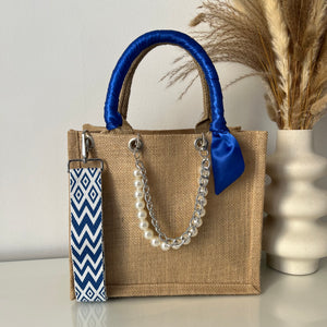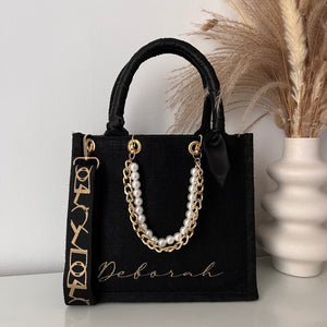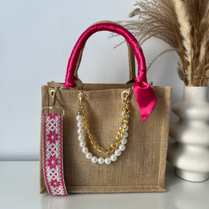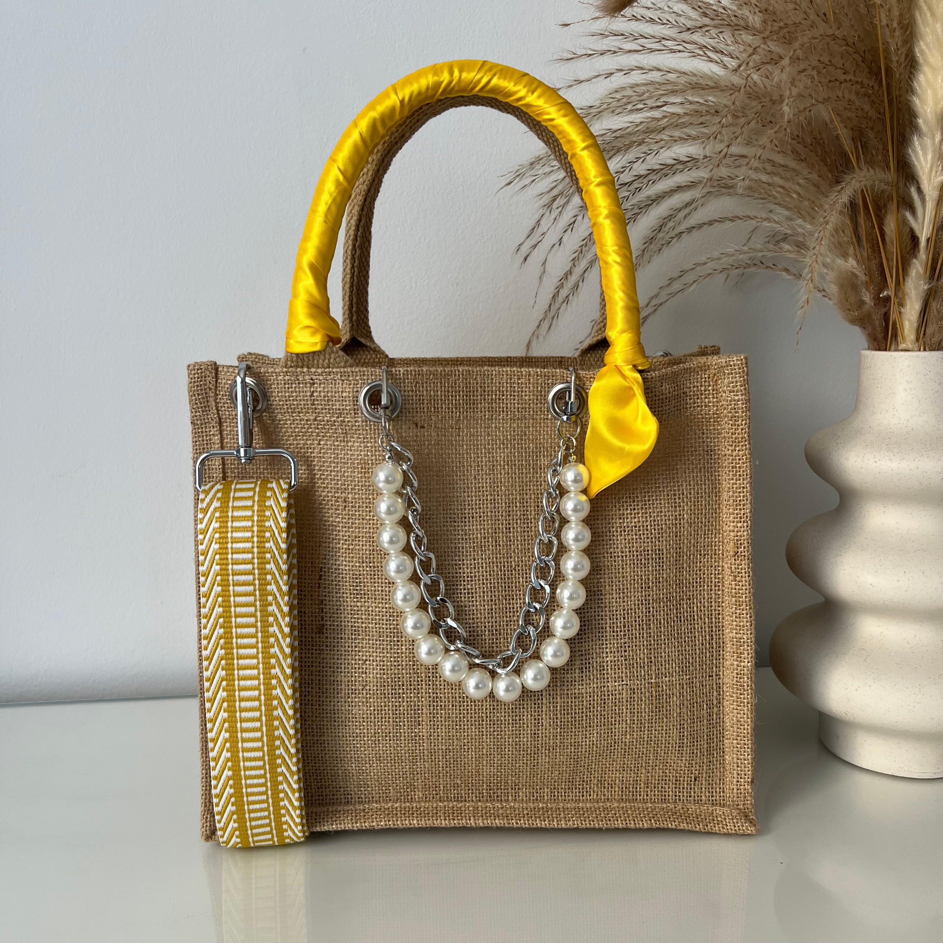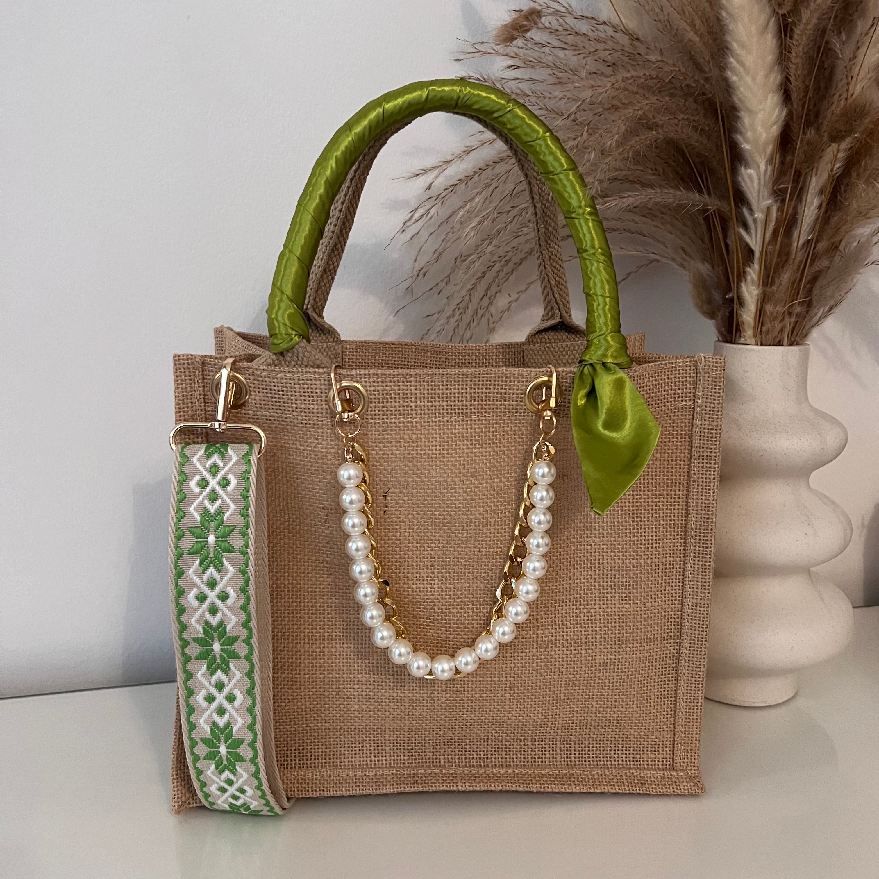 Sac en Jute Personnalisé avec Bijoux , Bandoulière, Foulard et Prénoms personnalisés.