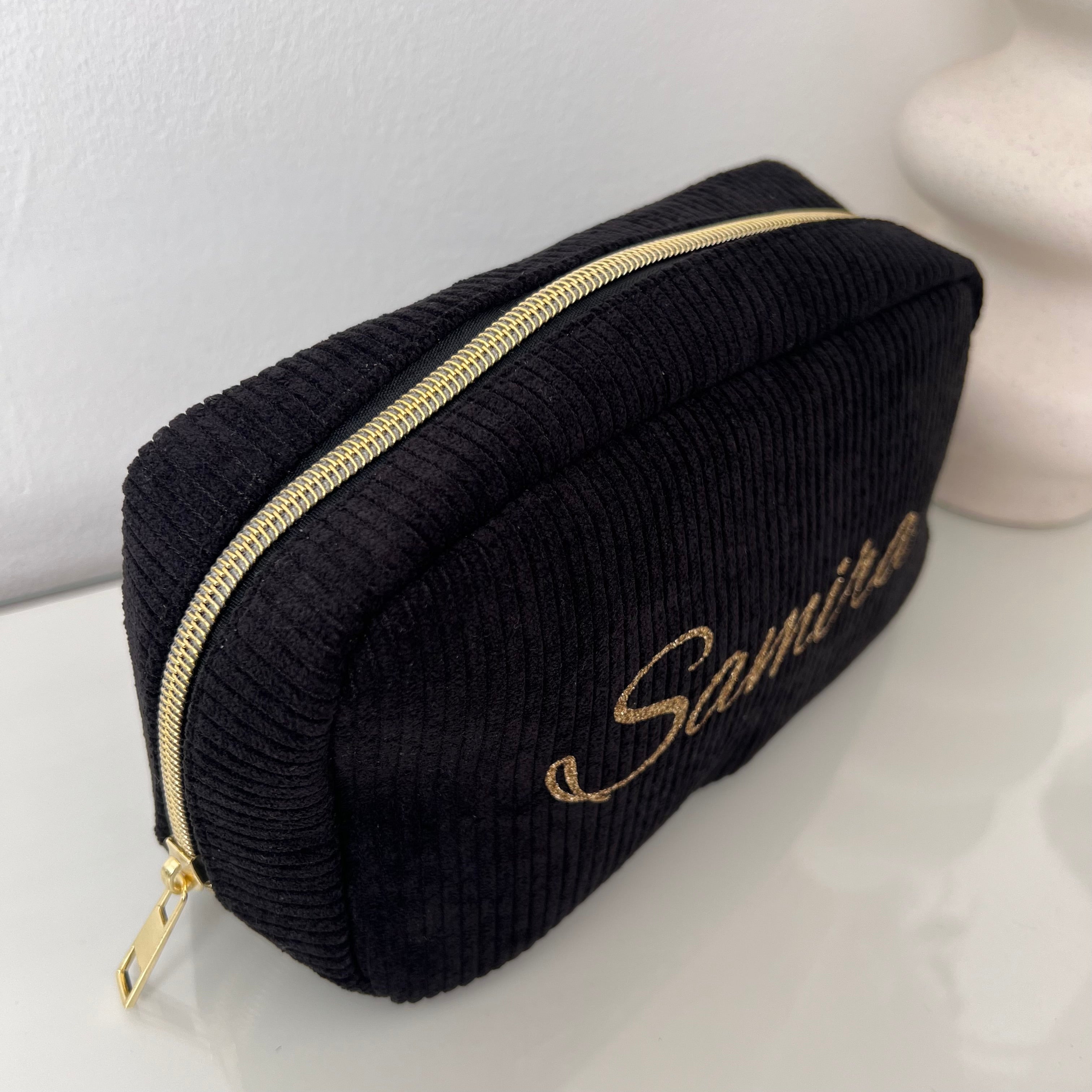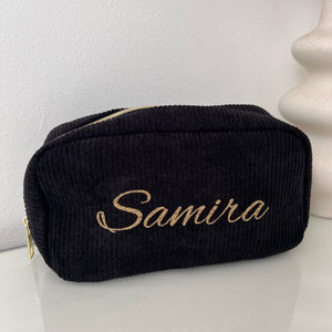 Trousse de beauté en velours côtelé personnalisé avec prénom