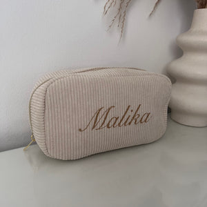Trousse de beauté velours côtelé personnalisé avec prénom