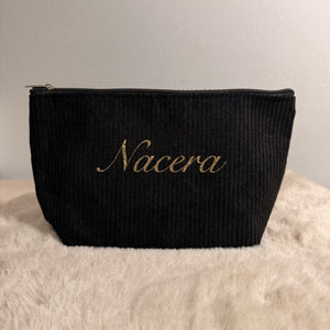 Trousse de beauté en velours côtelé personnalisé avec prénom